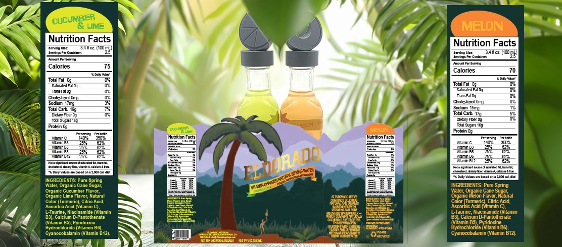 The projects objective was to redesign a full bottle and belly band for ELDORADO vitamin spring water. I approached this project with a story telling ux experience, where you lift the mountain scenery and find ELDORADO. Flowing with two new refreshing flavors, Cucumber & Lime, and Melon.